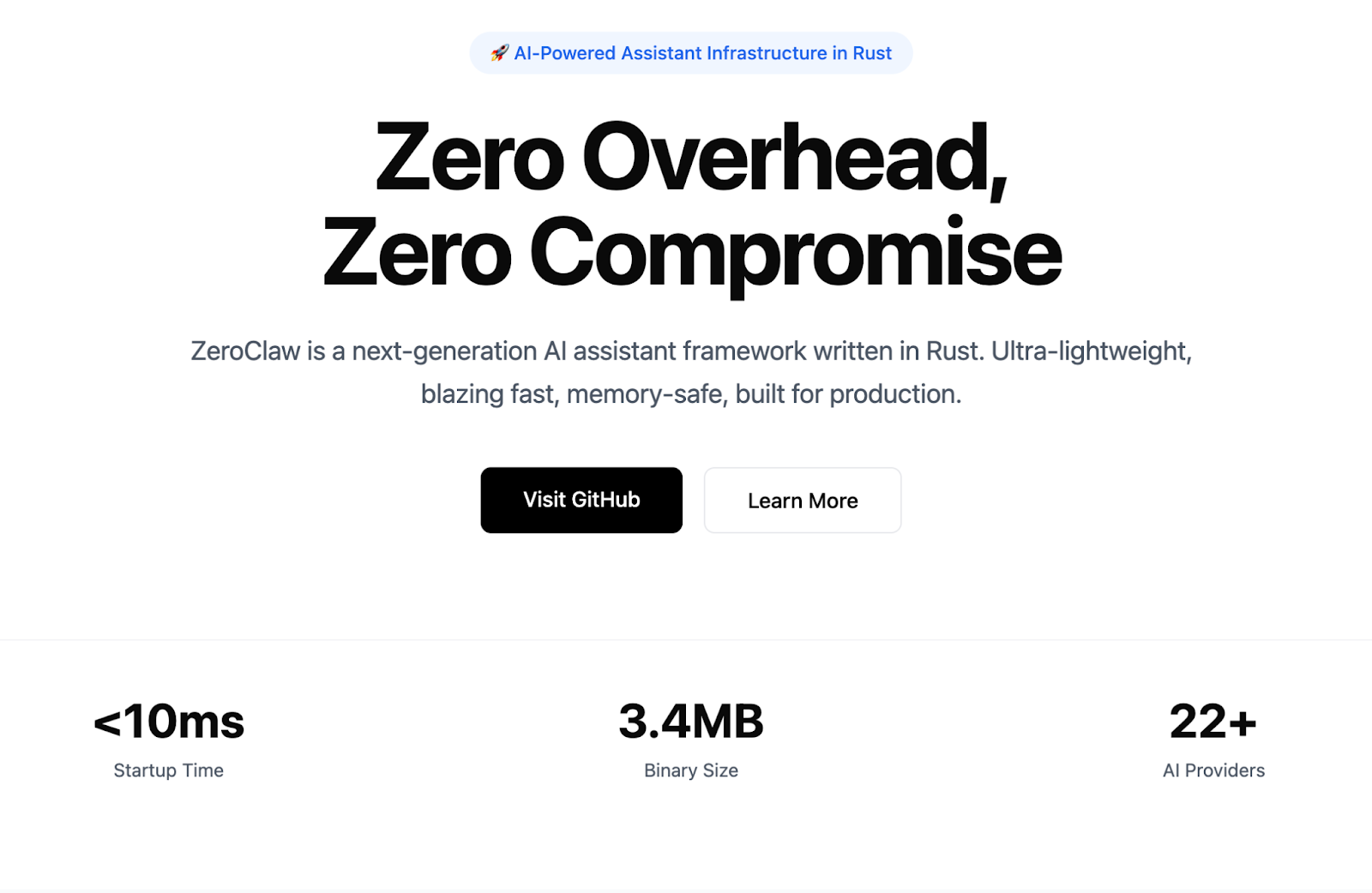 A Rust-based AI agent runtime with a 3.4MB binary, under 5MB RAM at runtime, and a 400x faster startup than OpenClaw. Built by students from Harvard, MIT, and Sundai.Club.