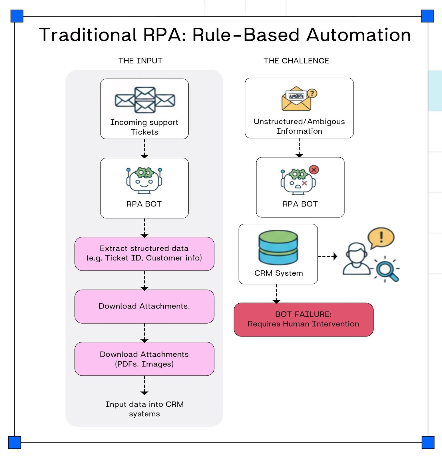 However, if a ticket contains unstructured or ambiguous information, the bot may fail or require human intervention to clarify and correctly route the request.