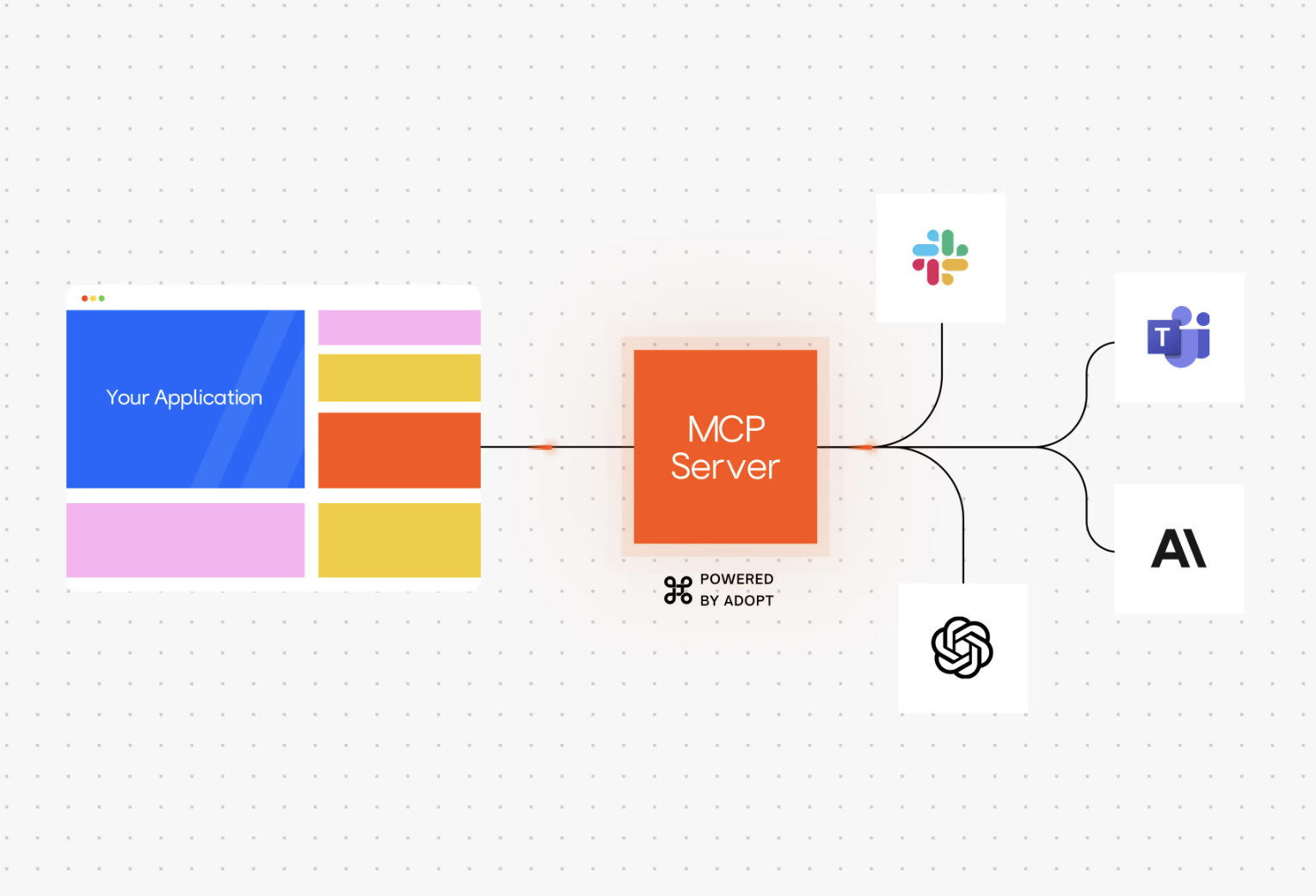 Adopt.ai’s integration hub is built on the Model Context Protocol (MCP), providing a universal “USB-C–style” interface that links AI agents to all your applications. Connect modern SaaS, legacy systems, and everything in between through a single, unified layer.